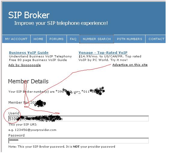 The account ID is something that YOU define @sipbroker.com. It can get a bit confusing, as you have both an accountID and an ALIAS and a SIP-code and a “member number” at sipbroker.com. Here’s what I see on the sipbroker “member details” page. the accountID to put in Switchvox is circled in red.