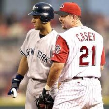 I enjoy watching them - and wonder what they're talking about. It reminds me that despite the animosity often expressed by fans, baseball is just a game. The players are all players. They may switch sides sometimes, but they are really all the same - working toward the same goals, with the same methods.